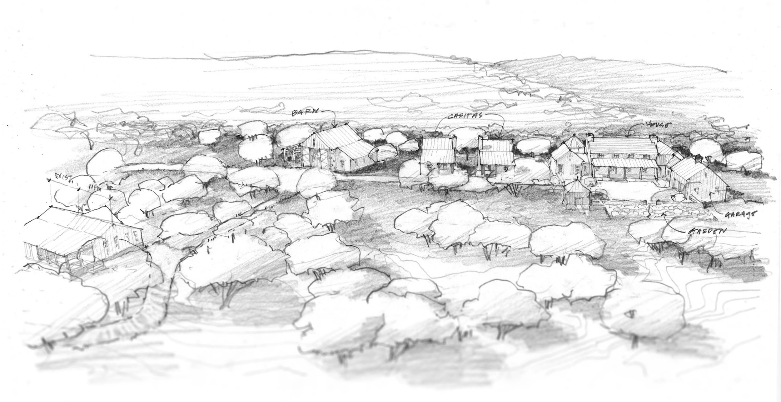 Rather than clustering structures for convenience alone, buildings are placed to respect topography, preserve viewsheds, and maintain a sense of openness. Guest houses, barns, and primary residences are positioned to feel connected — yet never crowded — allowing the ranch to breathe.